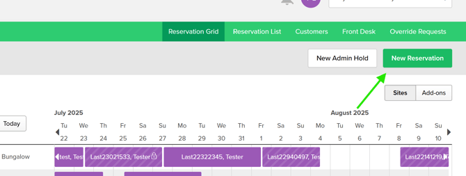 • On the Reservation Grid, click the green New Reservation button on the right side of the screen.