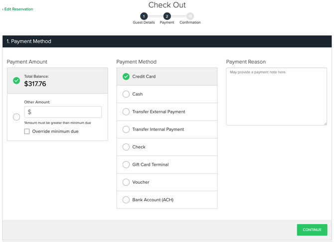 • If the guest has reserved before, use the green "Select Existing Guest" button to search for and autofill their information.