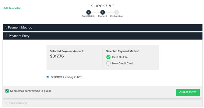 After the payment is submitted, the reservation is confirmed and will show on your Reservation Grid and Reservation List.