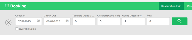 • Select Booking from the main navigation. You will be navigated to the Reservation Grid.
